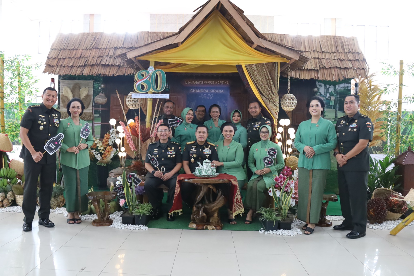 PEKANBARU || Peringatan Hari Ulang Tahun ke-80 Persit Kartika Chandra Kirana (KCK) Tahun 2026 yang mengusung tema “Berkarya” berlangsung khidmat di Aula Kaharuddin Nasution Makodam XIX/Tuanku Tambusai, Kamis (23/4/2026) pukul 08.00 WIB. Pangdam XIX/TT Mayjen TNI Dr. Agus Hadi Waluyo, S.A.P., M.M., CHRMP hadir bersama Ketua Persit KCK PD XIX/TT Ny. Yulia Agus Hadi Waluyo, didampingi jajaran pejabat utama Kodam, para Komandan Satuan, serta pengurus Persit.