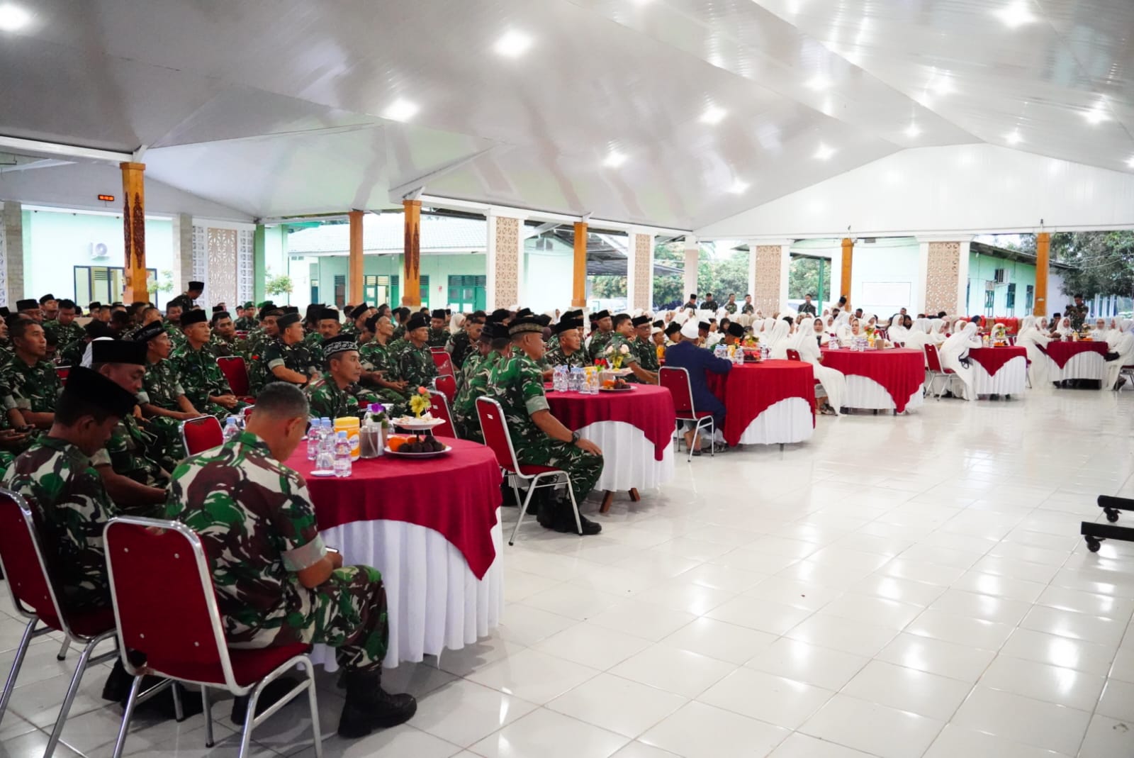 Kegiatan yang mengusung tema “Ramadhan Membentuk Mental Prajurit TNI yang Prima dan Memegang Teguh Nilai-Nilai Tauhid untuk Indonesia” ini dihadiri langsung oleh Danpuslatpur Kodiklatad Brigjen TNI Polsan Situmorang, S.E., M.KP., M.Phil., bersama Ketua Persit KCK Cabang XIII Ny. Jeannie Polsan Situmorang.