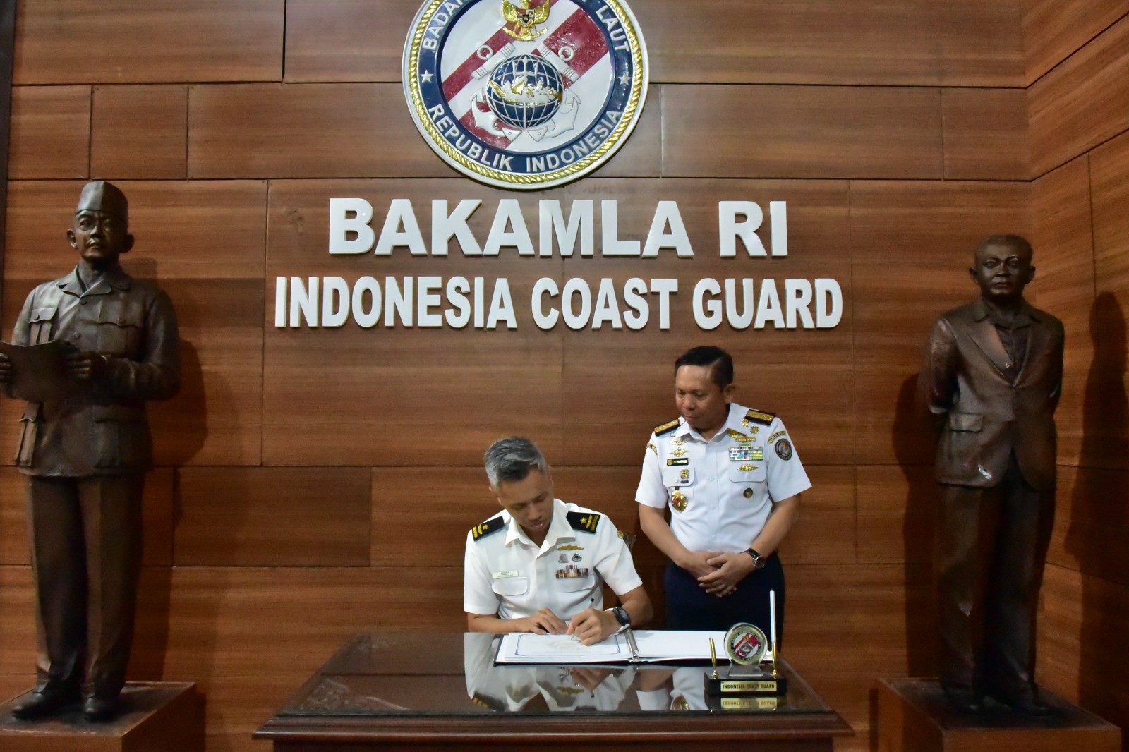 JAKARTA || Kepala Badan Keamanan Laut Republik Indonesia (Bakamla RI) Laksdya TNI Dr. Irvansyah, S.H., M.Tr.Opsla., menerima kunjungan kehormatan (courtesy call) dari Commander Maritime Security (MARSEC) Command Republic of Singapore Navy (RSN) Rear Admiral (RADM) Ng Xun Xi beserta delegasi di Markas Besar Bakamla RI, Jakarta Pusat, Selasa (19/08/2025).