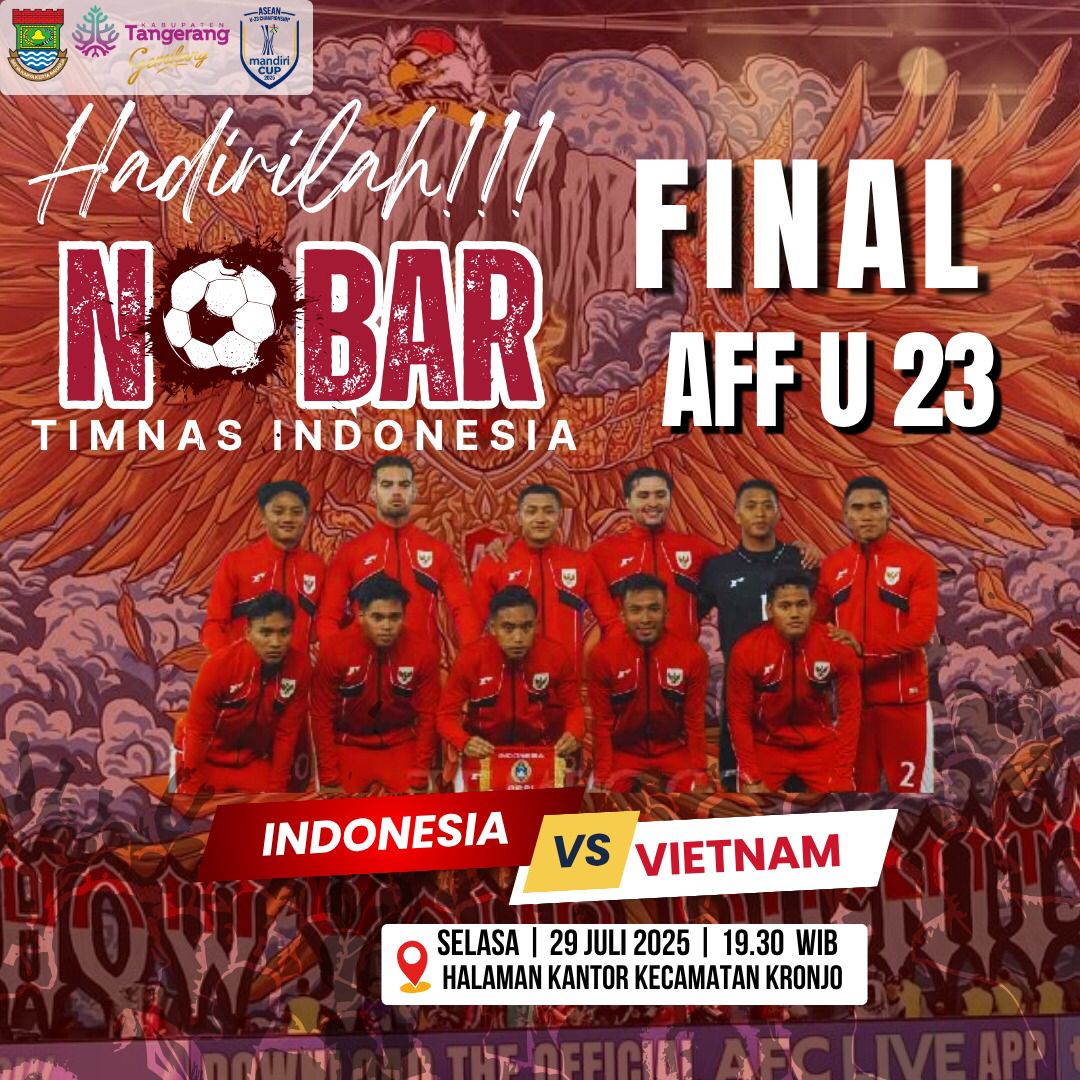 TANGERANG – nusantarapublik.co.id II Dukungan masyarakat terhadap Timnas Indonesia U-23 yang berlaga di Final Piala AFF U-23 2025 begitu terasa di berbagai daerah, termasuk di Kecamatan Kronjo, Kabupaten Tangerang. Puluhan warga tumpah ruah memadati halaman Kantor Kecamatan Kronjo untuk menggelar nonton bareng (nobar) pertandingan bergengsi antara Indonesia vs Vietnam, Selasa malam (29/07/2025).