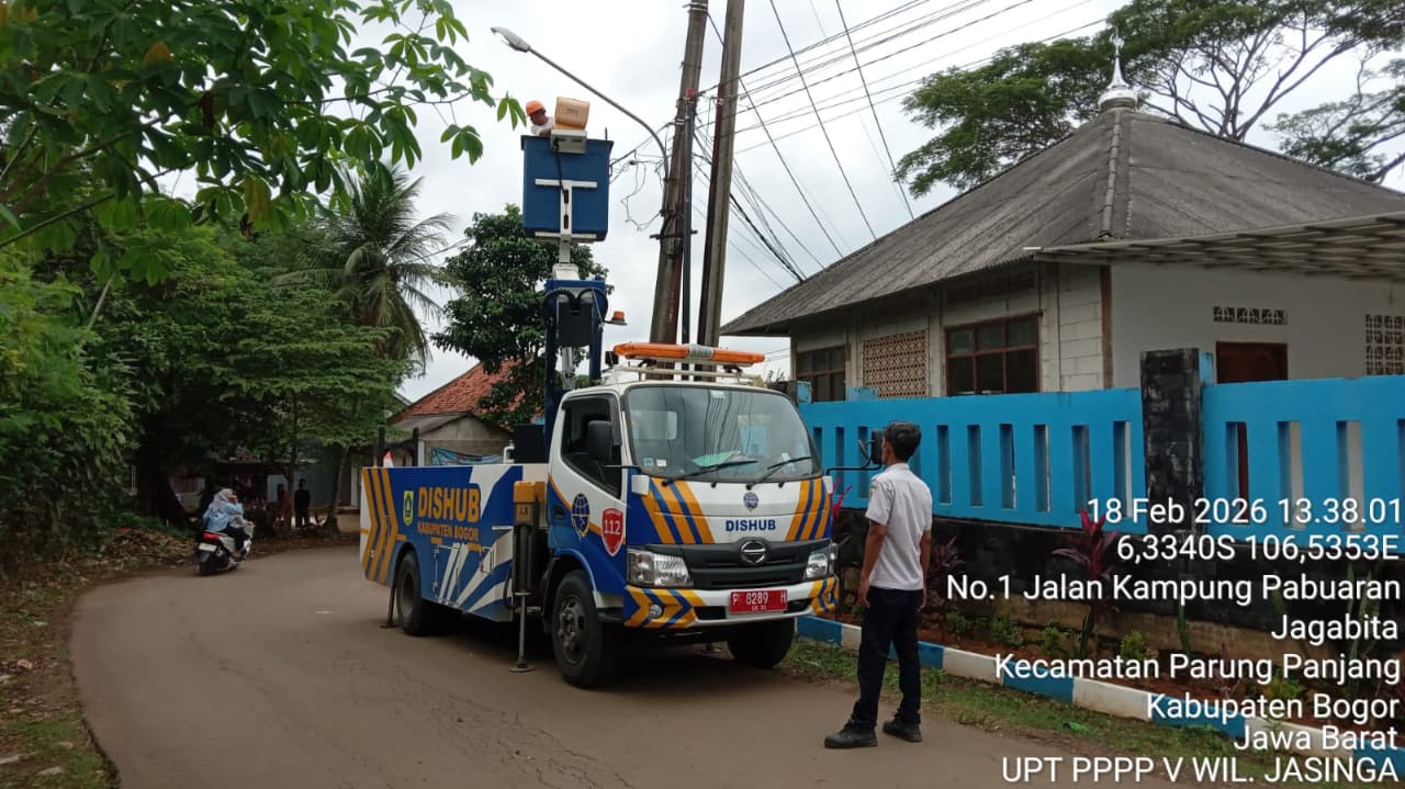 BOGOR – nusantarapublik.co.id ll Dinas Perhubungan Kabupaten Bogor melalui Tim Perlengkapan Jalan Umum (PJU) melaksanakan serangkaian perawatan fasilitas penerangan jalan sebagai tindak lanjut atas laporan masyarakat, Rabu (18/02/2026).